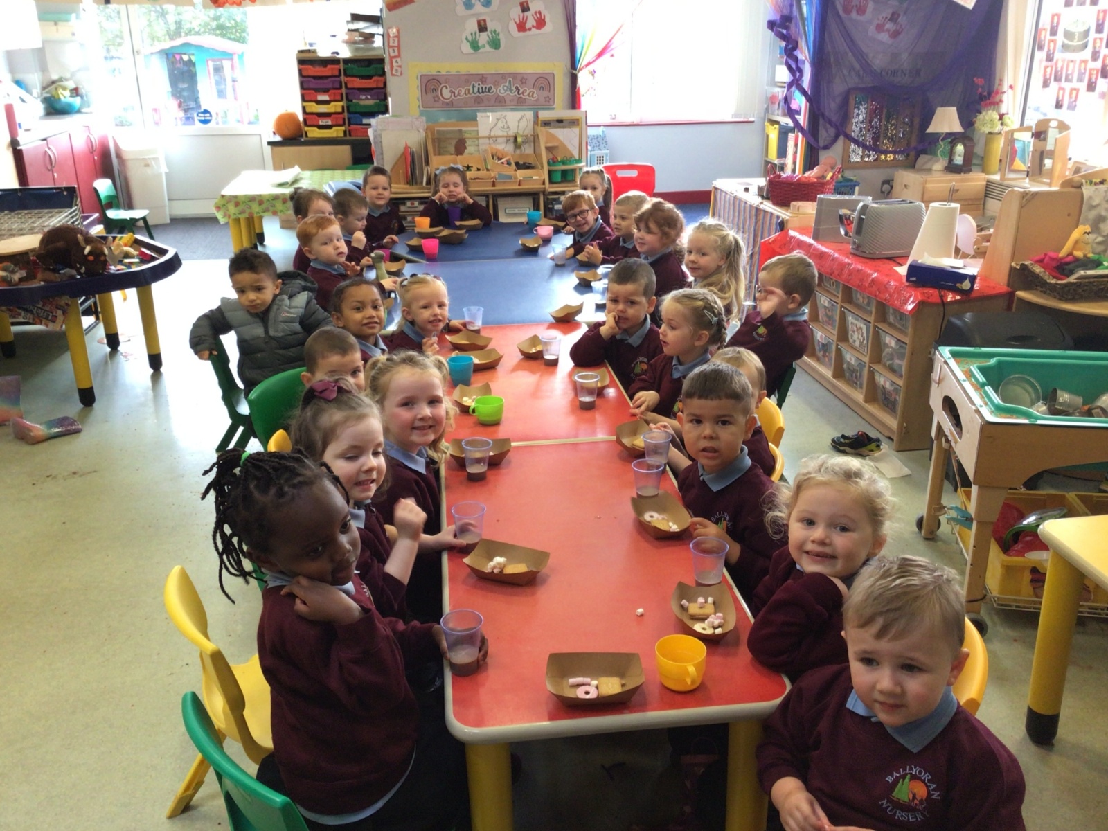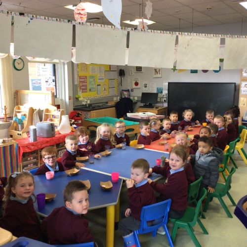 The boys and girls in Nursery 1 enjoyed the Sponsored Welly Boot Walk today to raise money to purchase musical instruments for our Outdoor Musical Area. They all did very well and had a special treat of biscuits and hot chocolate afterwards. Well done Nursery 1!