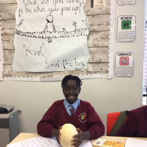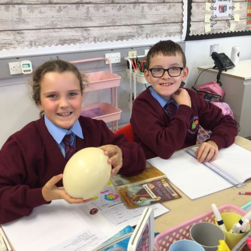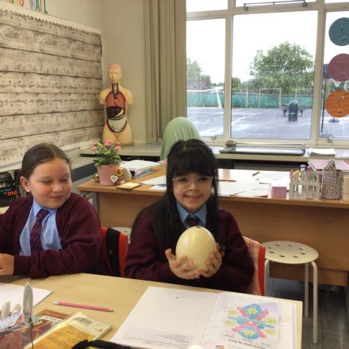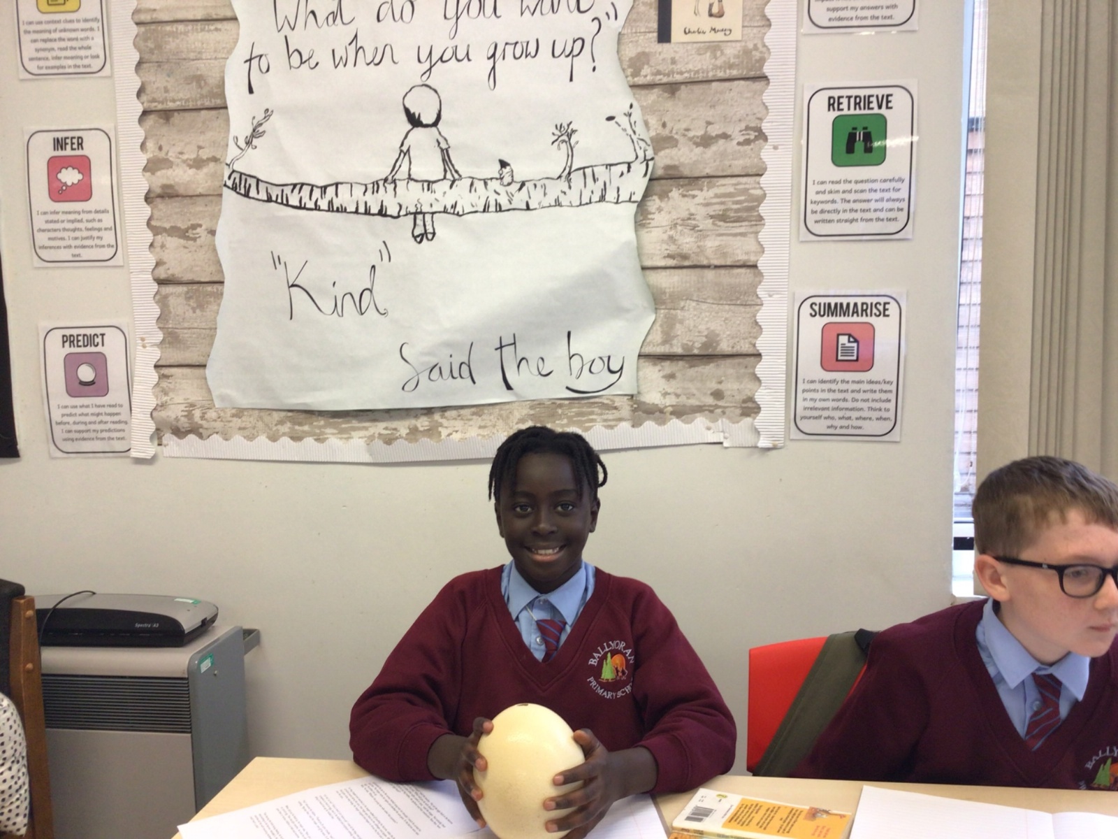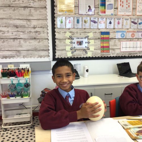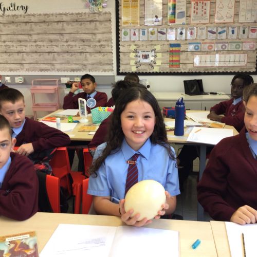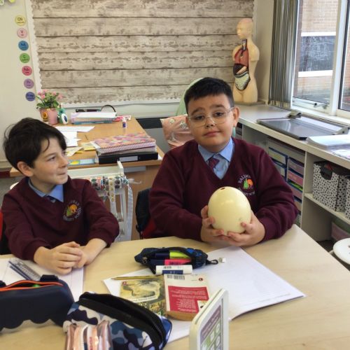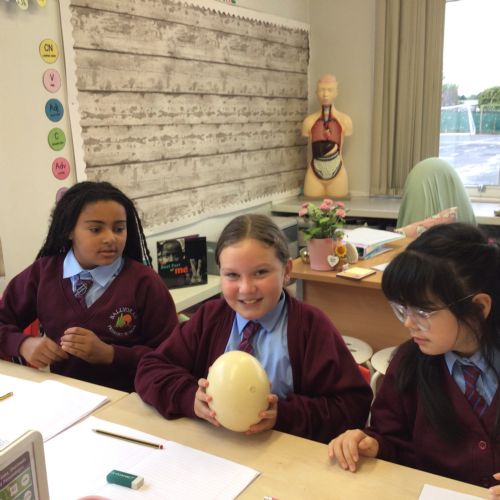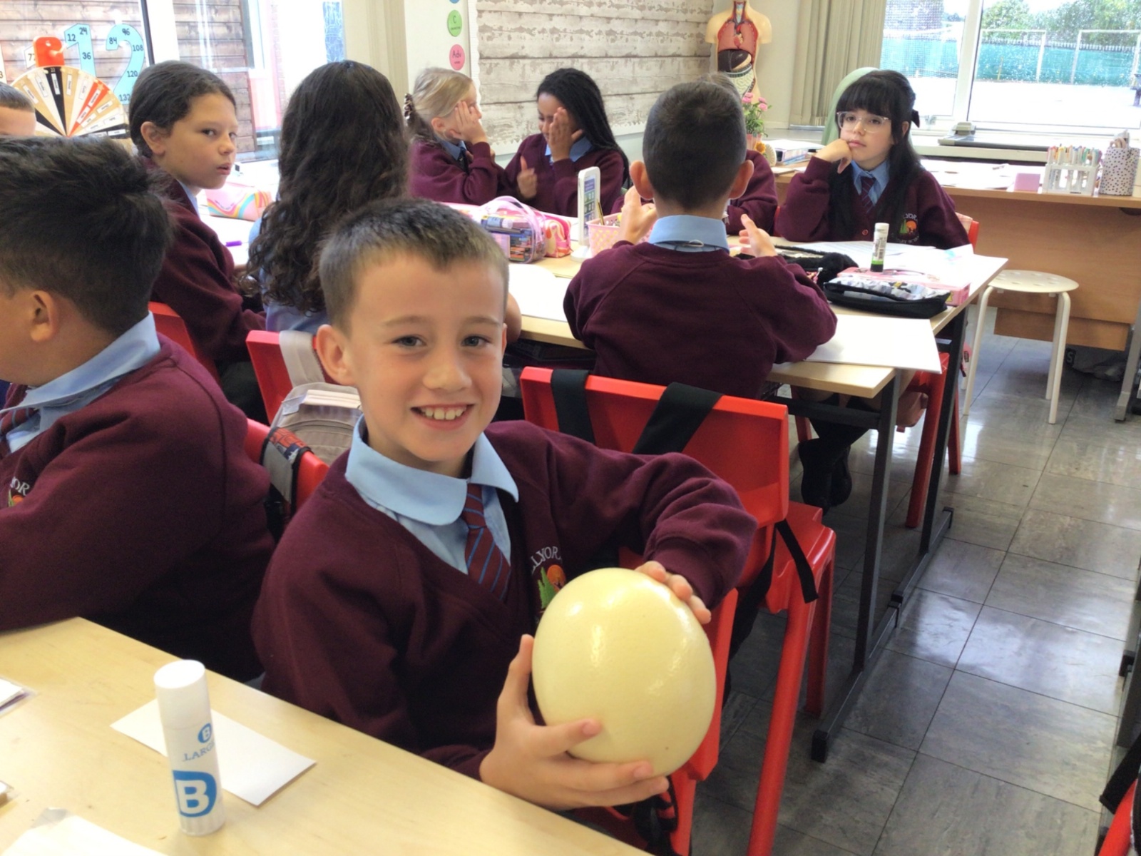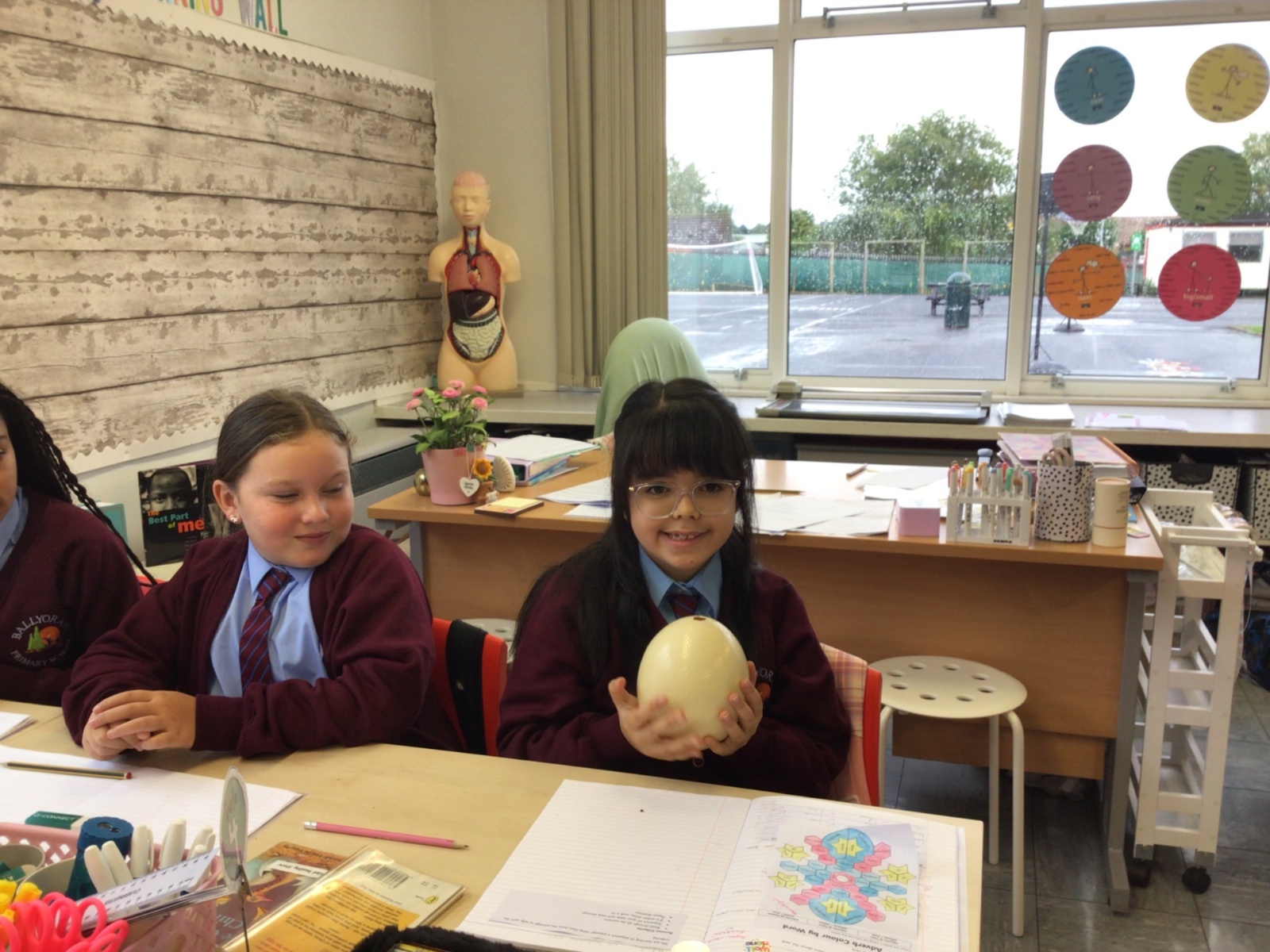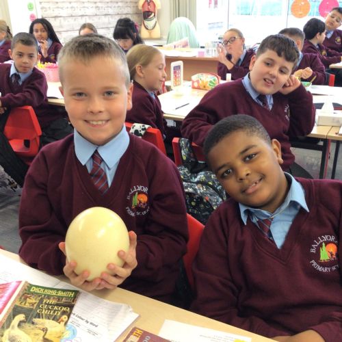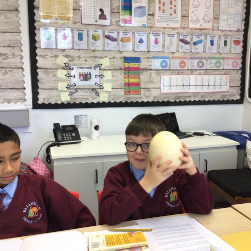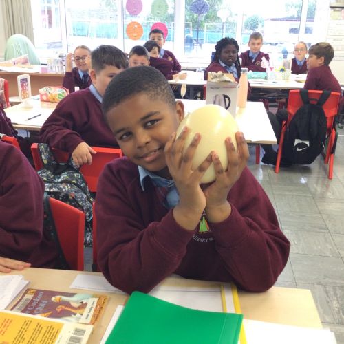 Our class novel is The Cuckoo Child by Dick King-Smith. In the story, Jack Daw steals an ostrich egg from the Wildlife Park to try and hatch it at his farm. We were delighted to see and handle a real ostrich egg today. They are gigantic! The largest egg of any bird 🥚