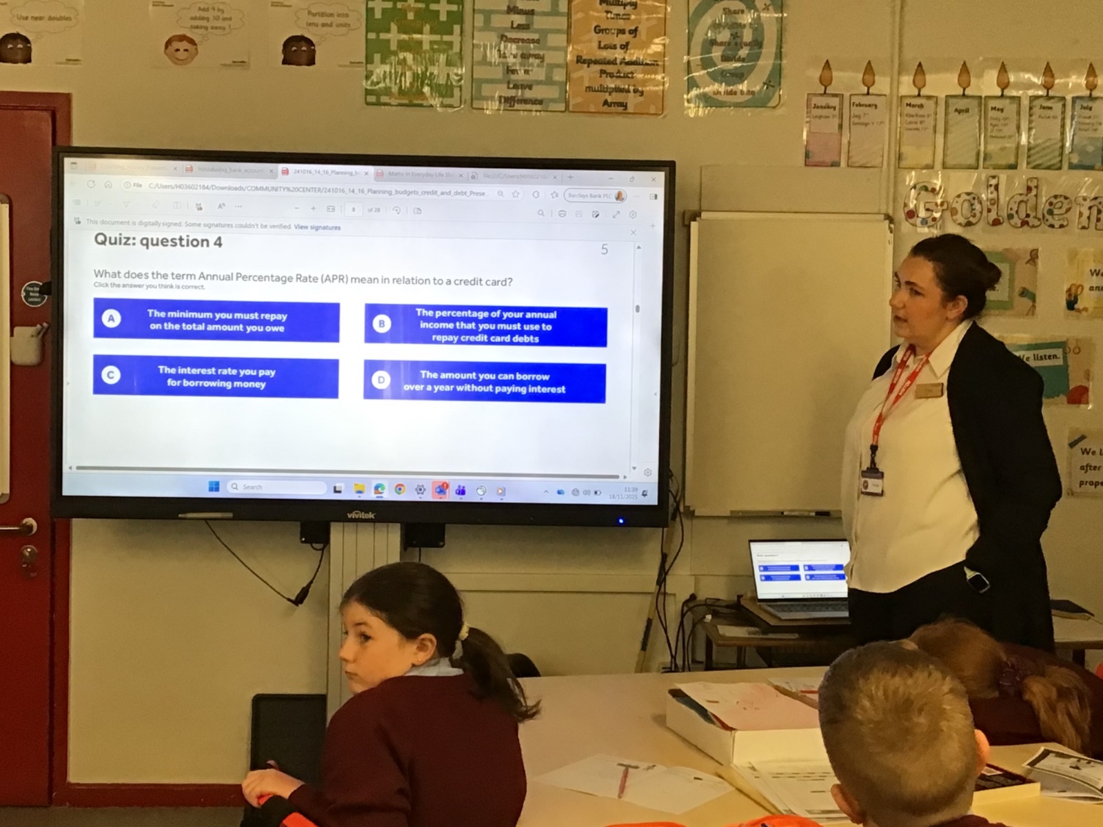 We enjoyed an interactive quiz on banking terms. We learned about credit, debit, contactless payments and other features of bank accounts. Thanks to Helen and Chloe.