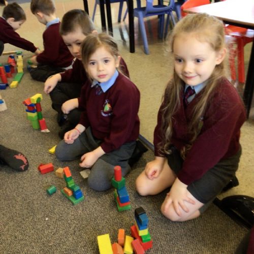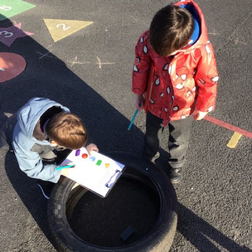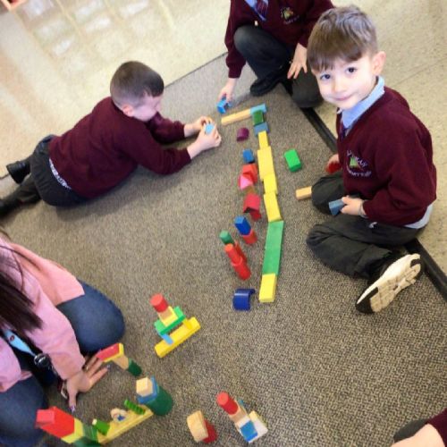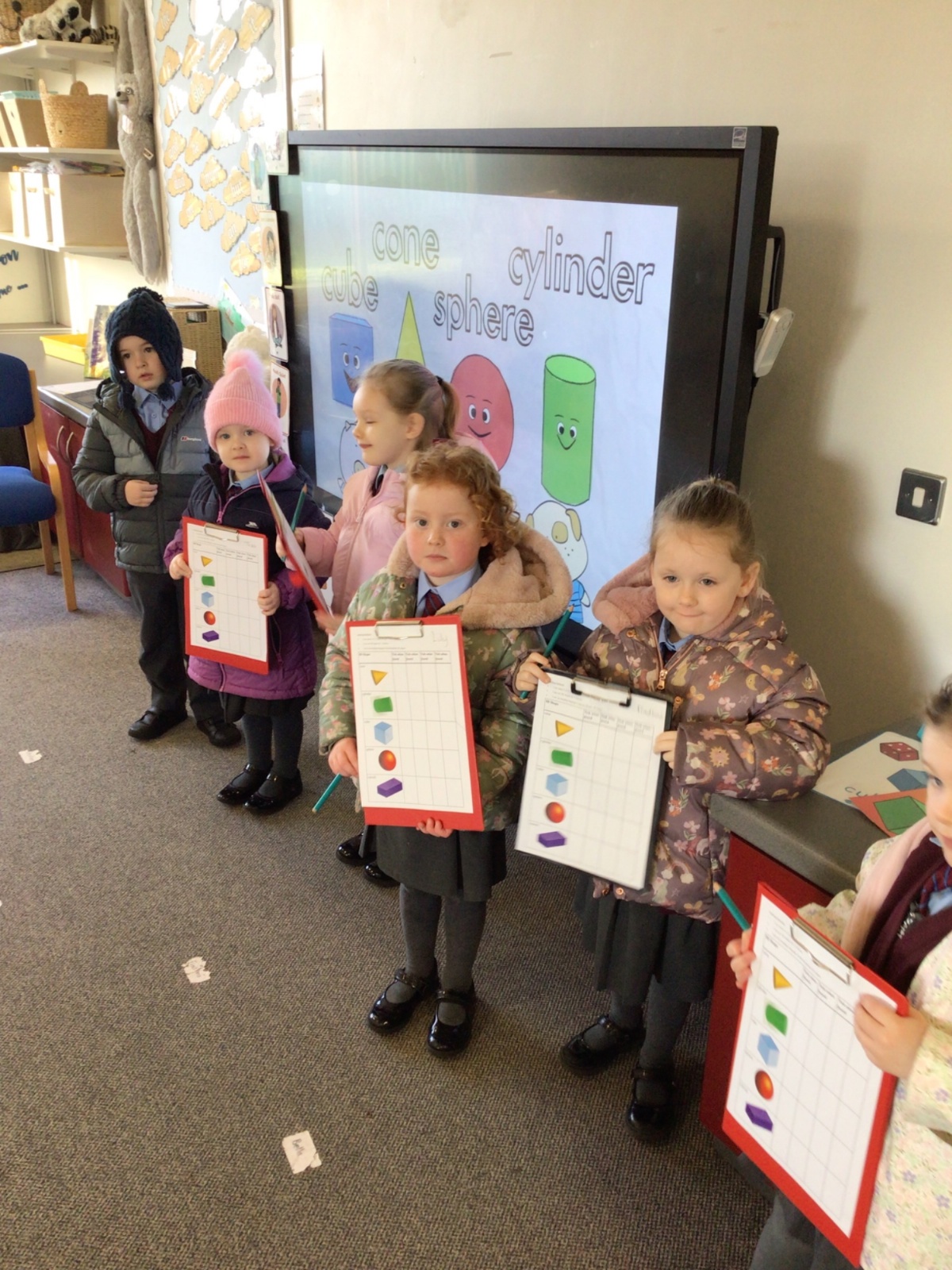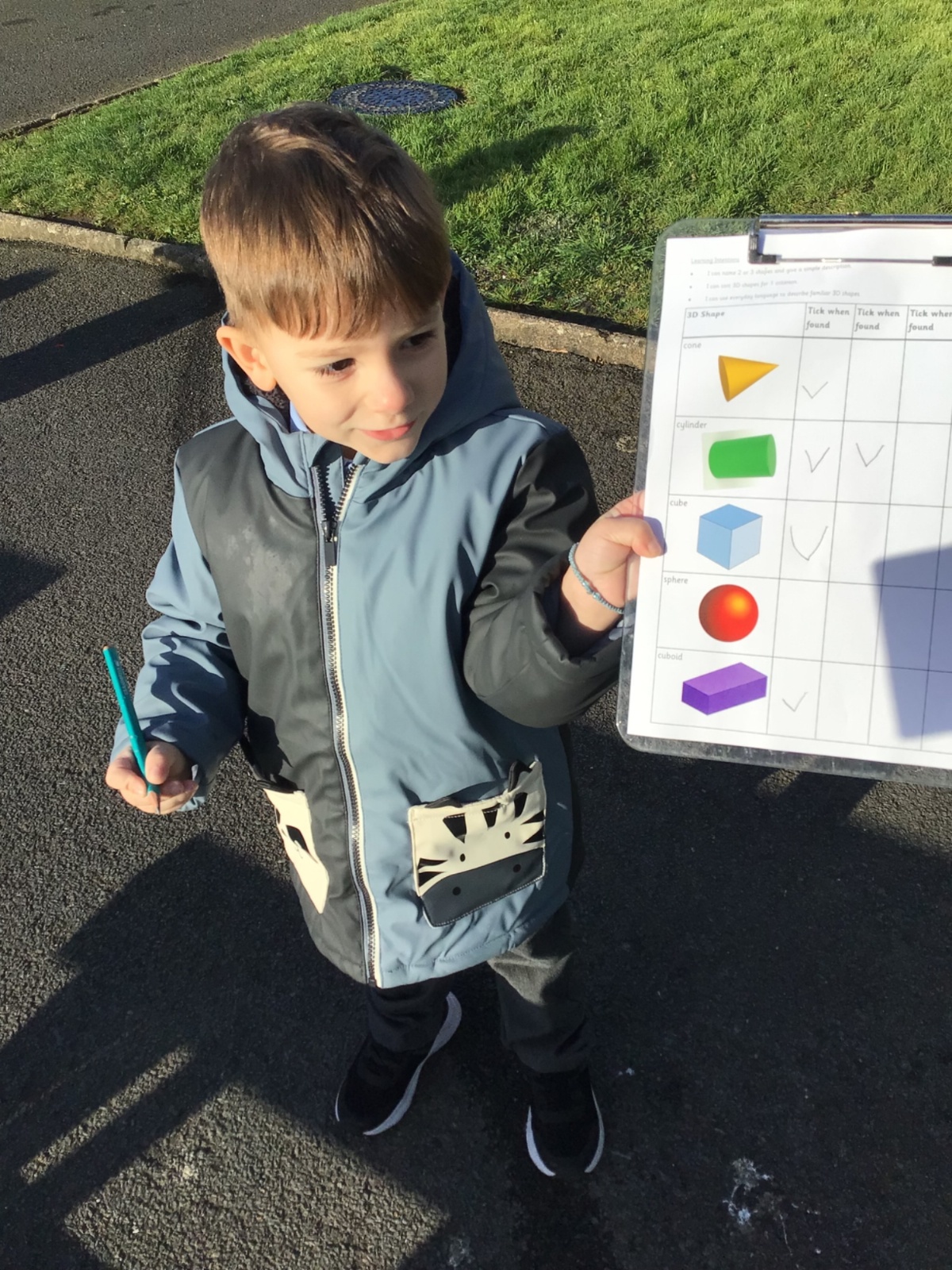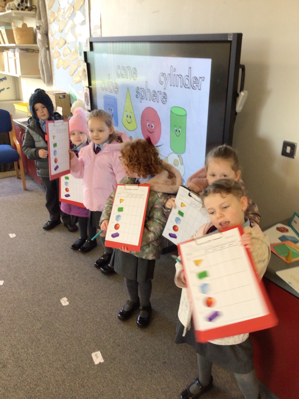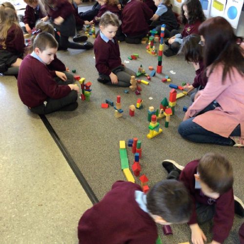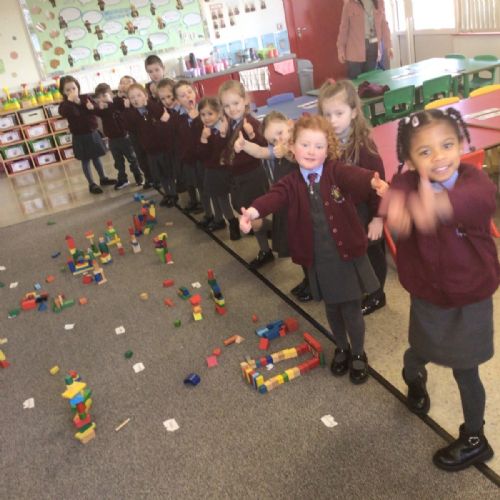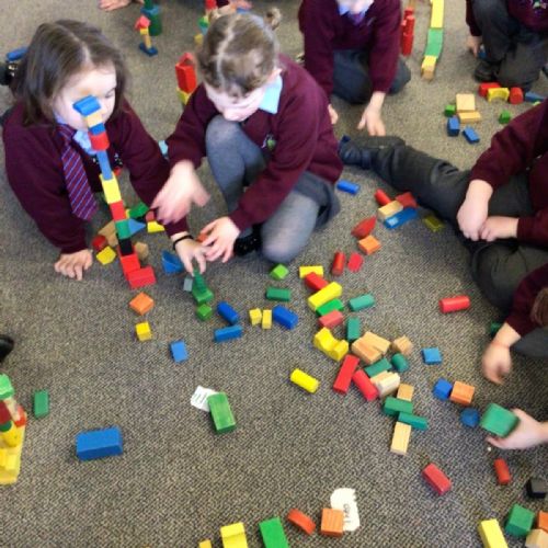 The children in Year 1 are learning about the 3D shapes cylinder, cone, cube, cuboid and sphere. Today they went in search of the shapes and built a city using the 3D shapes they found.