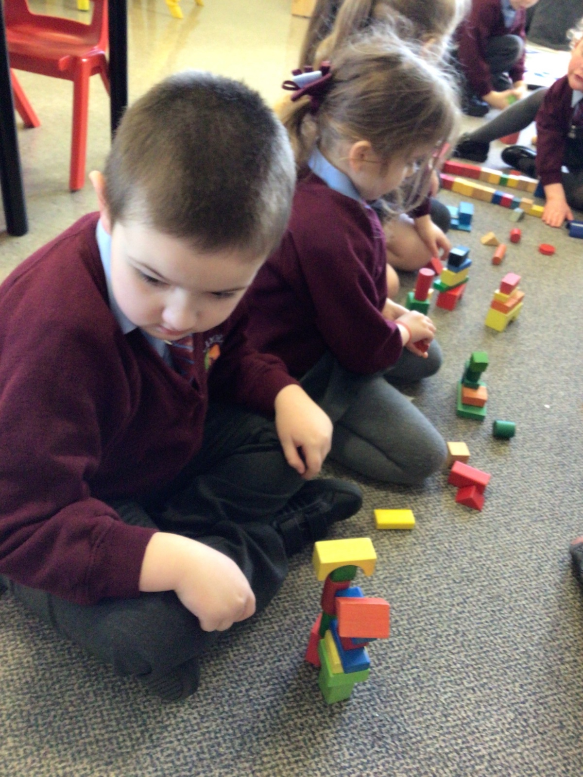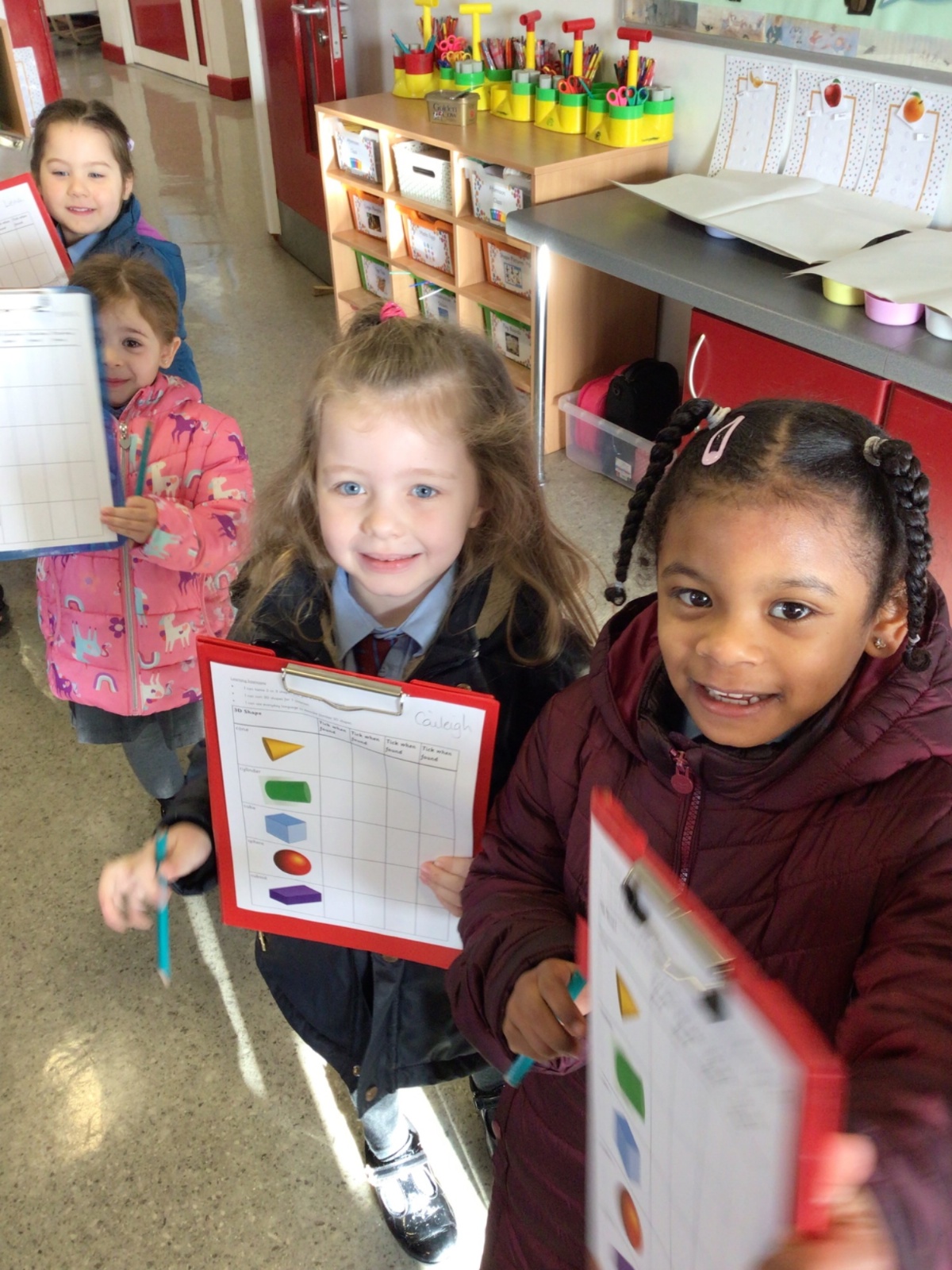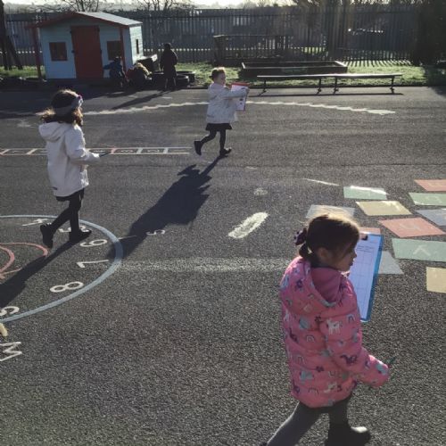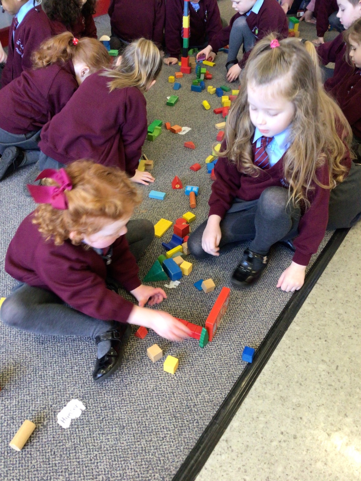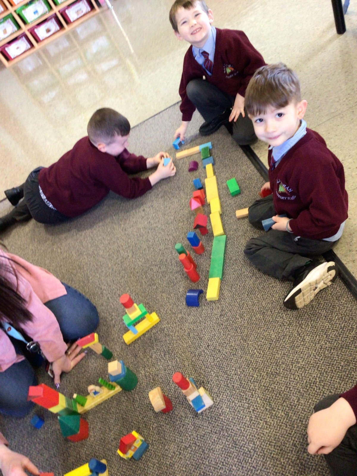 The children in Year 1 are learning about the 3D shapes cylinder, cone, cube, cuboid and sphere. Today they went in search of the shapes and built a city using the 3D shapes they found.