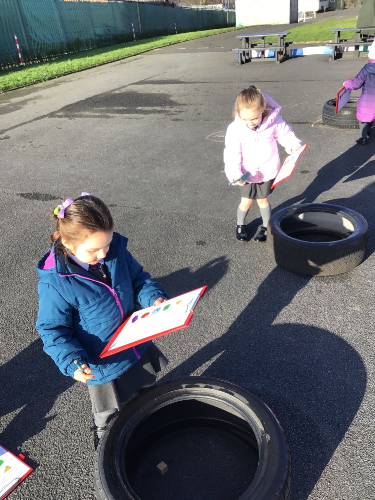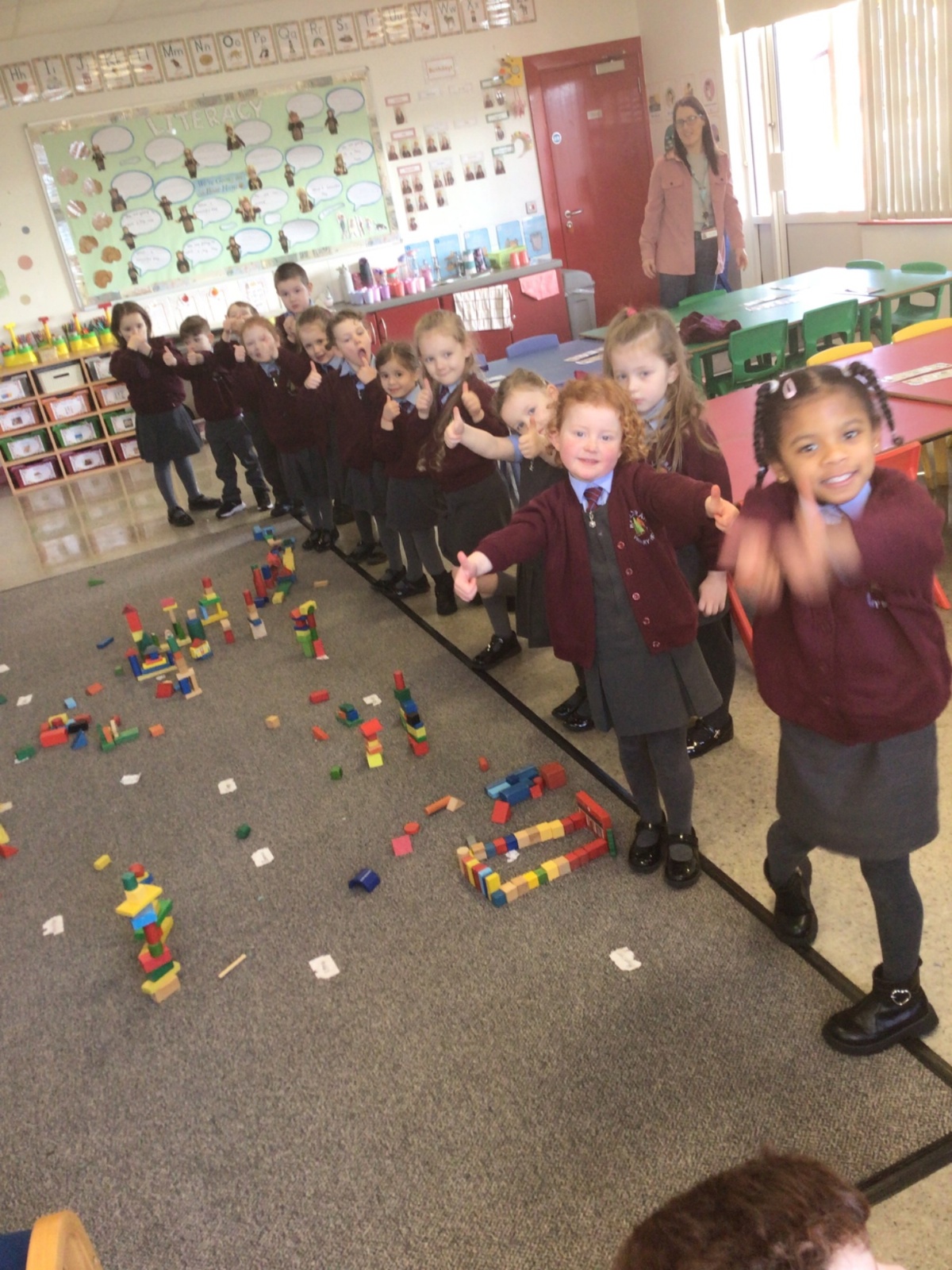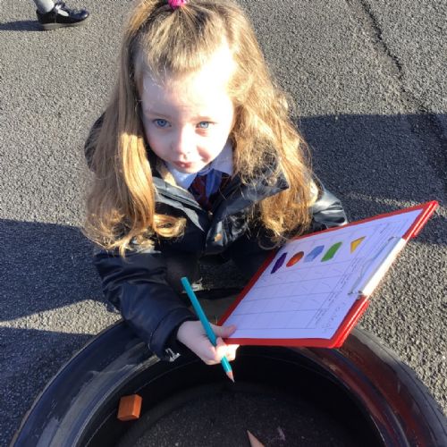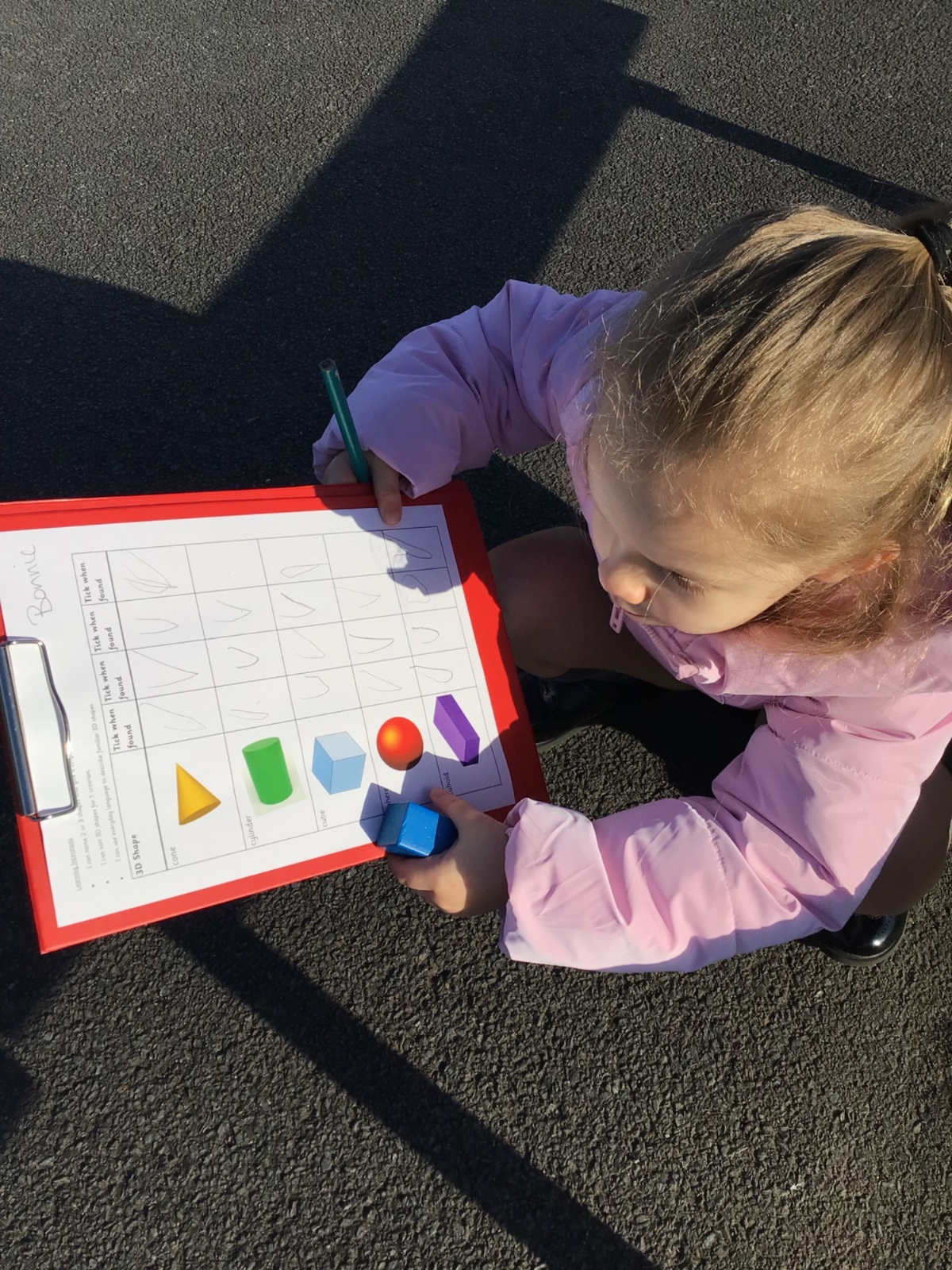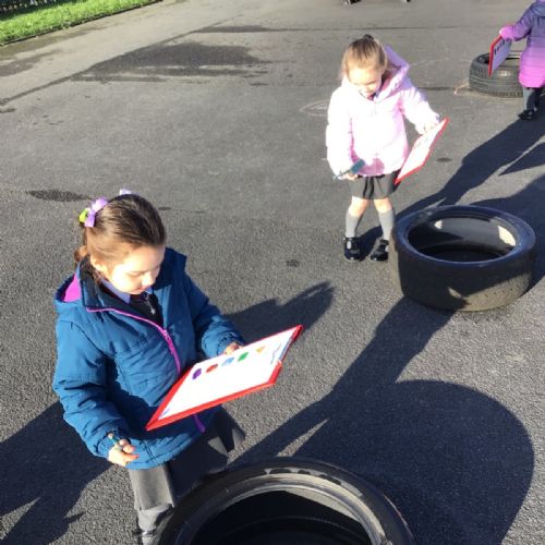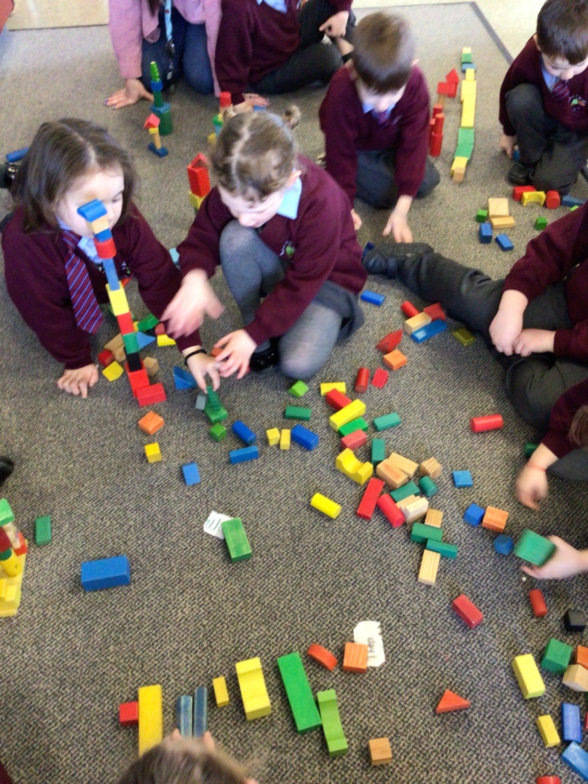 The children in Year 1 are learning about the 3D shapes cylinder, cone, cube, cuboid and sphere. Today they went in search of the shapes and built a city using the 3D shapes they found.