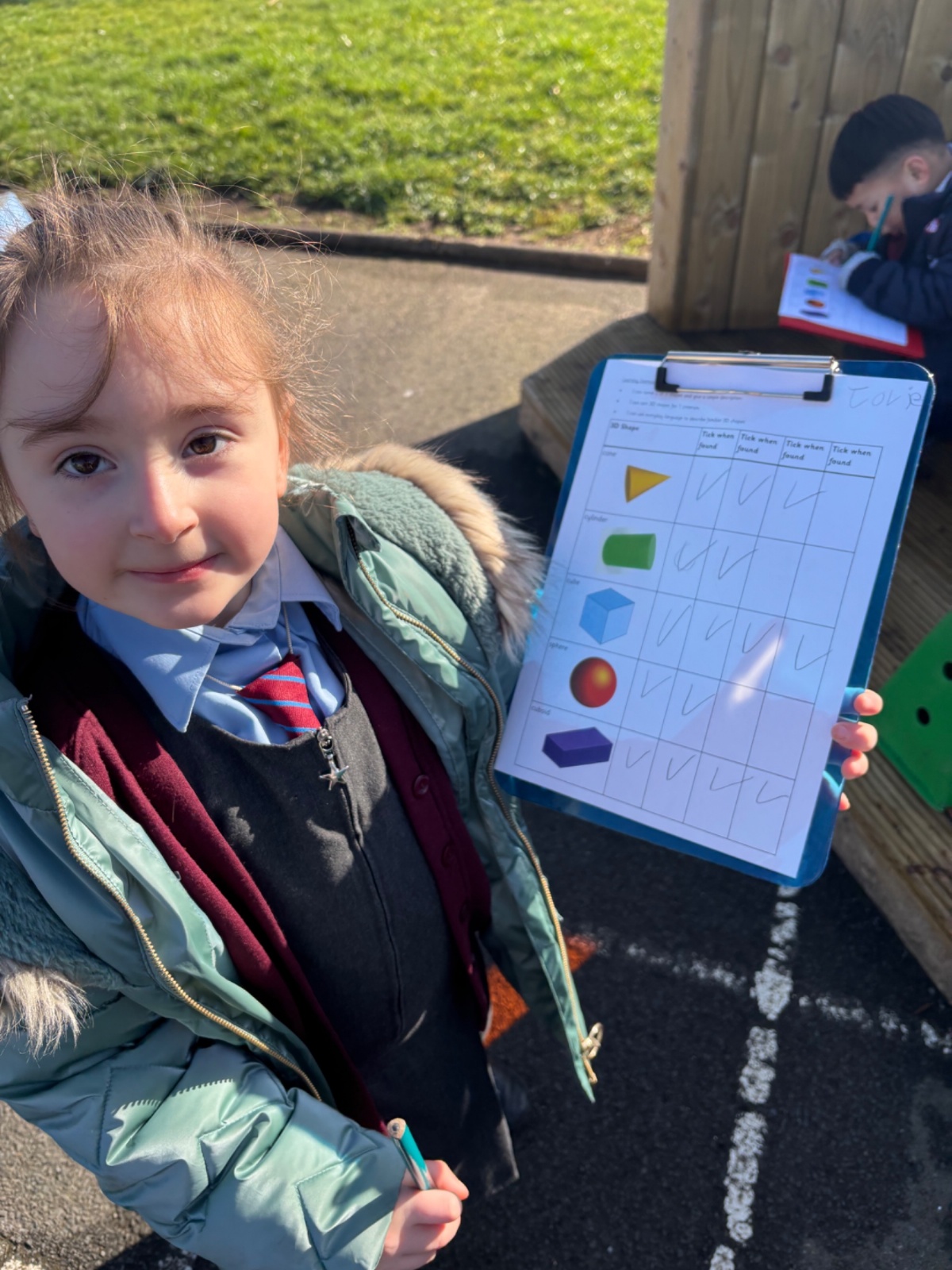 Year 1 did a fantastic job hunting for 3D shapes in the playground.