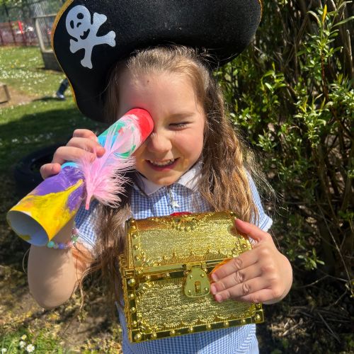 Year 1 have started their new Pirate topic by making telescopes, treasure maps and writing lists for a pirate adventure.