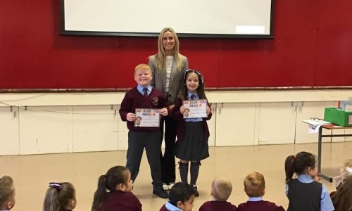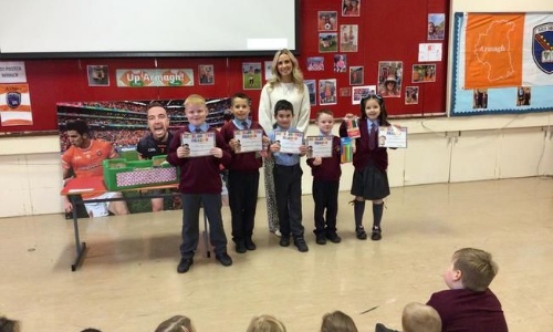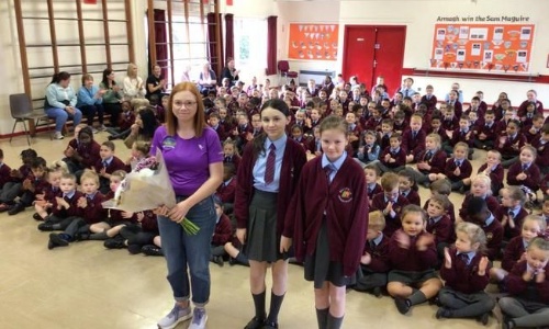 Stephanie McCool, mum of Caelan and Ruadh joined us in Assembly on Friday morning. She shared photos of her recent 10k run and talked about the training she undertook prior to the run. Stephanie fundraised through 'GO Fund Me' and raised &pou