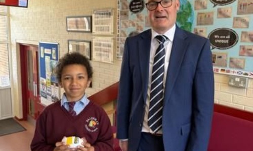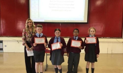 Well done to Carlos who received an award outside of school and brought it into Assembly to show everyone.