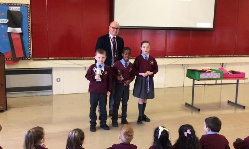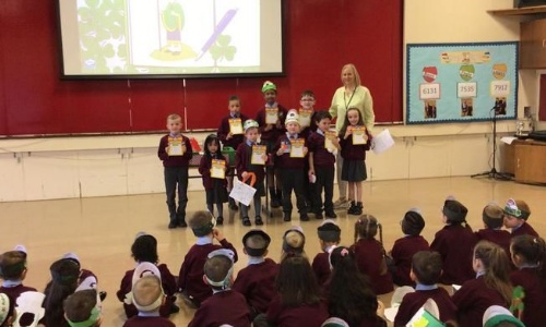 We had a lovely morning in Assembly celebrating St Patrick. Mrs McGuire shared the story of St Patrick's life followed by a quiz! Five pupils from Year 3 read a poem called The Five Shamrocks. Niamh from Year 5 danced two jigs. Mrs McConville pla