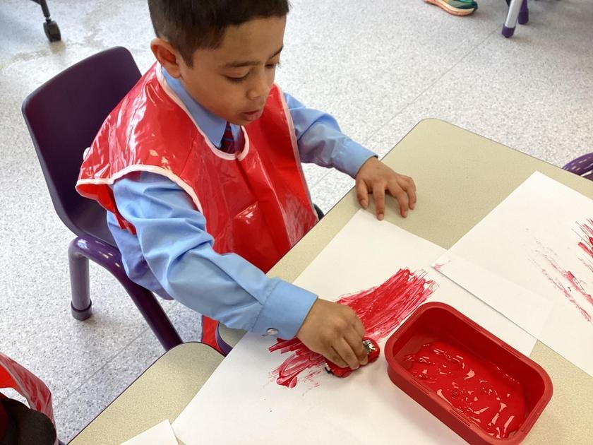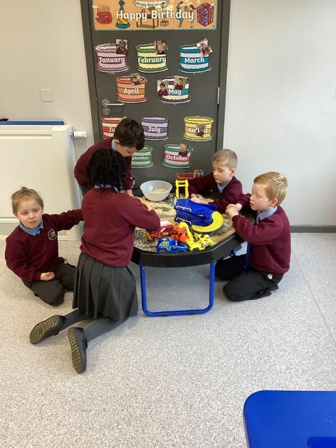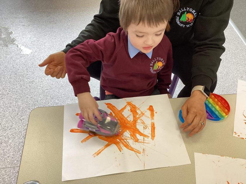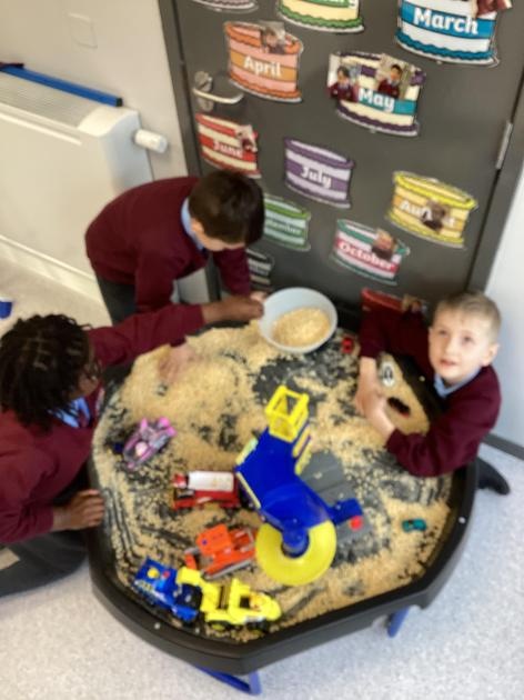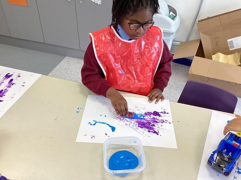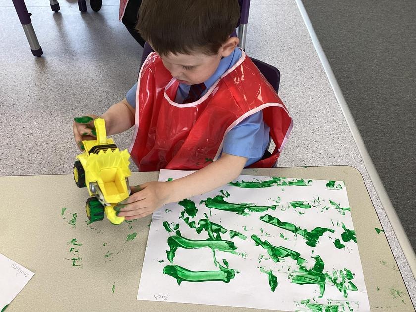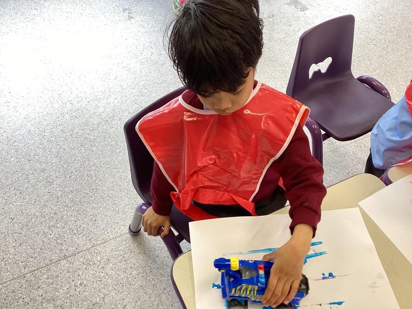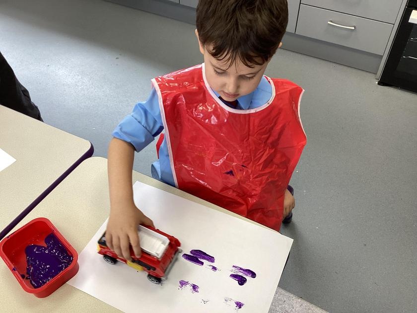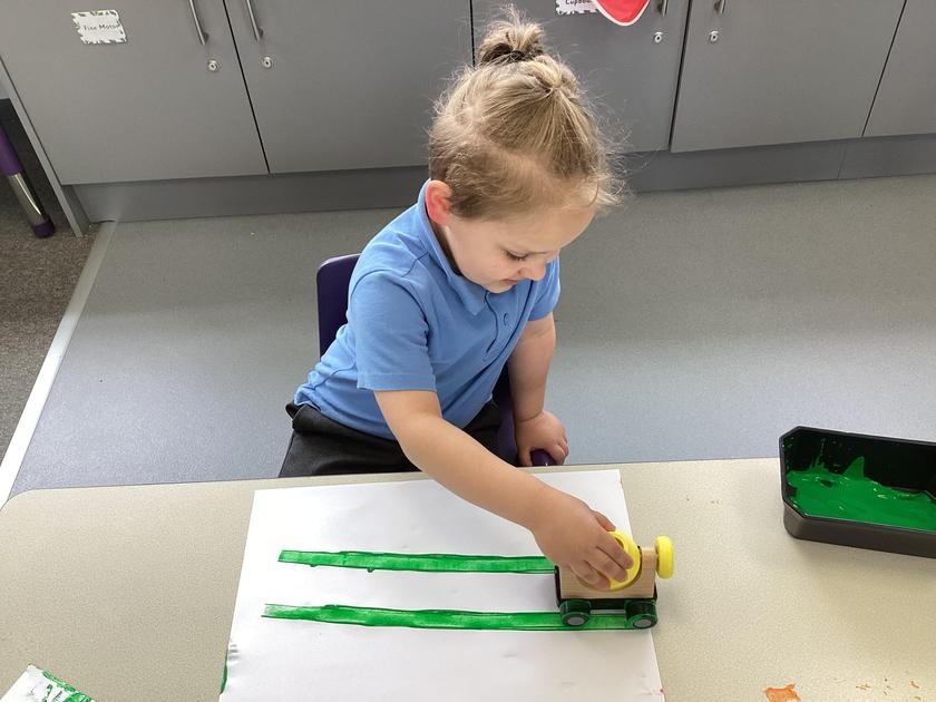 We have had lots of play opportunities related to our transport topic. We enjoyed playing with Paw Patrol vehicles and using different types of transport to make tracks on paper using paint.