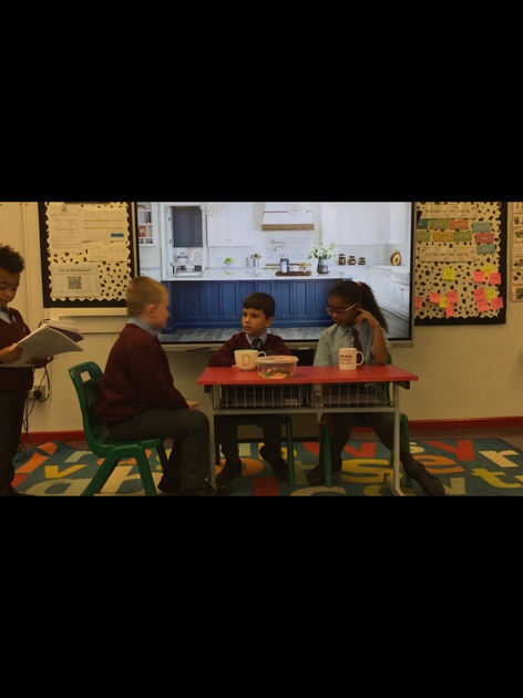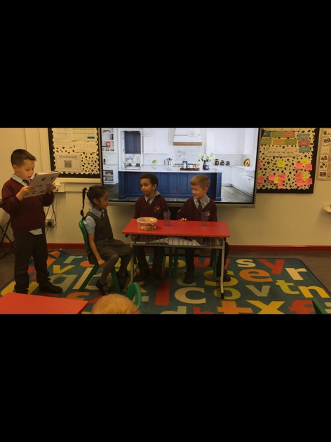 This week we took part in a drama activity and put our acting skills to the test! We edited a play script based on the story ‘The Tiger Who Came to Tea’ and then performed it in front of the class. Take a look at some action shots.