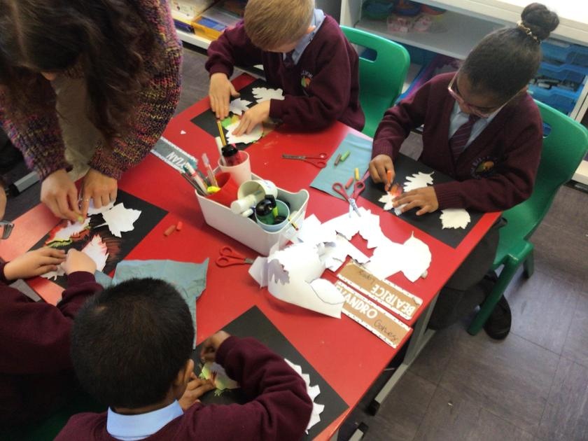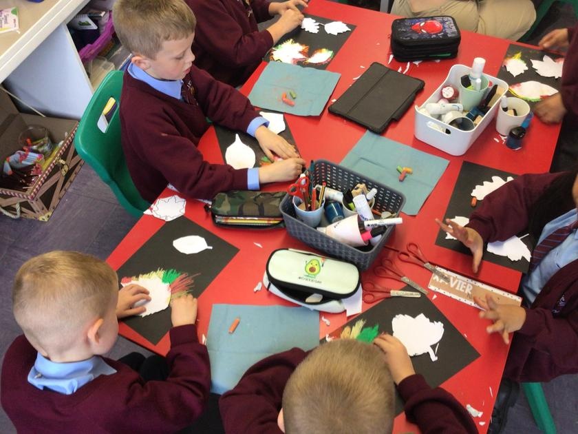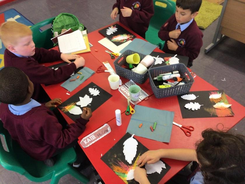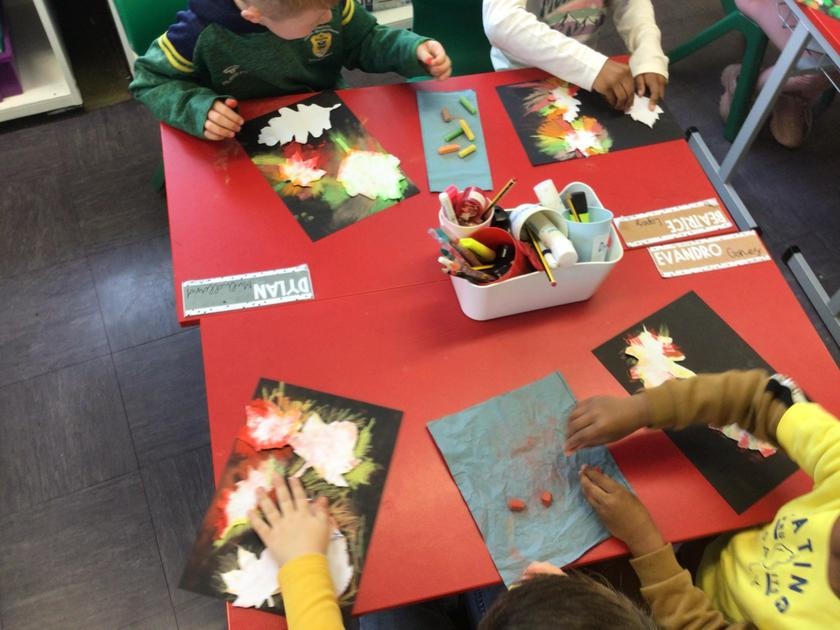 We enjoyed using chalk pastels to create some beautiful autumn leaf art to bring some autumn feeling in to our classroom.