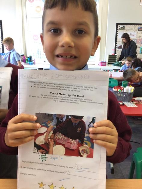 Year 3 have been working so hard over the last few weeks on instructional writing. We ended our topic by making top hat buns. We followed our instructions and made the buns then evaluated our instructions. What a yummy treat for a Wednesday!